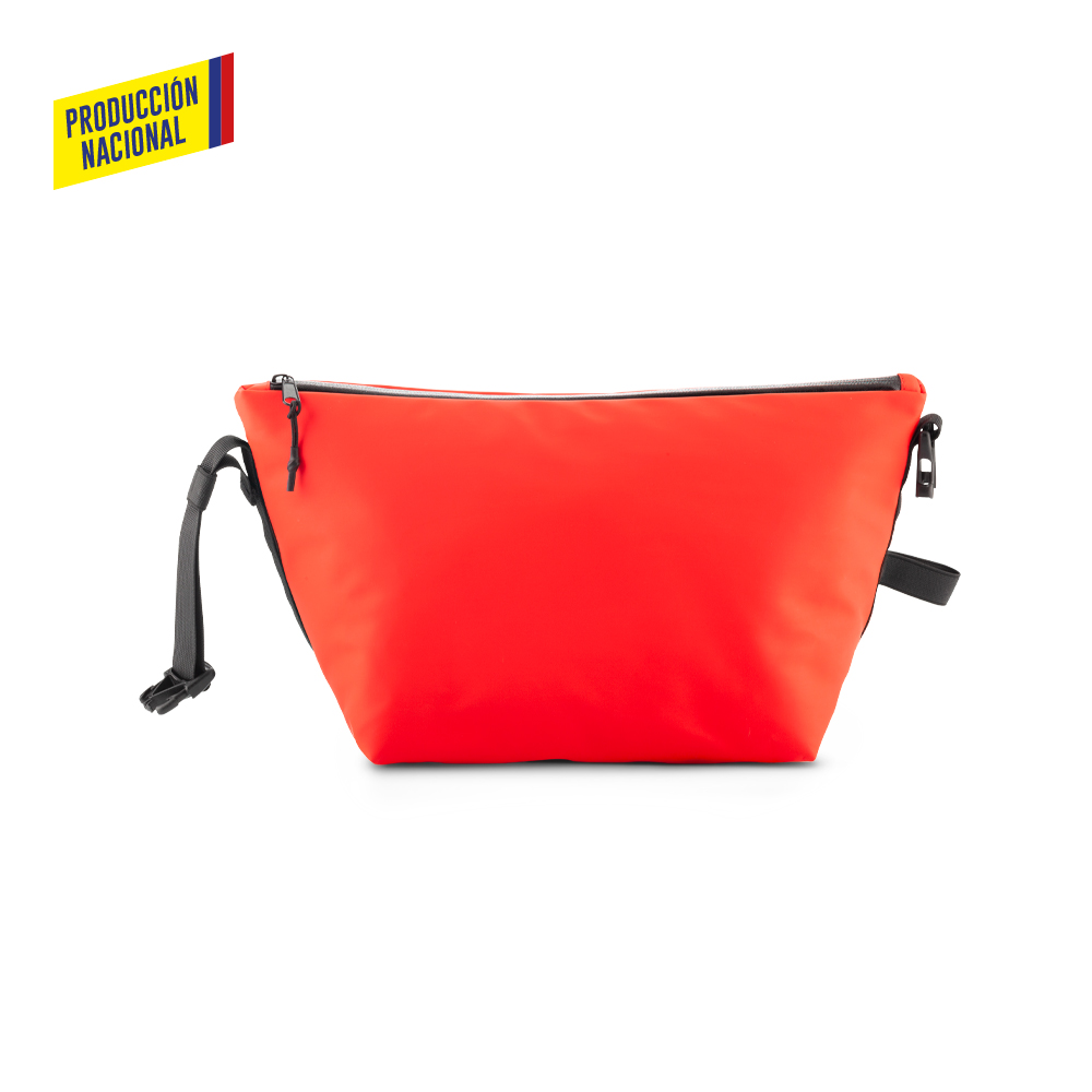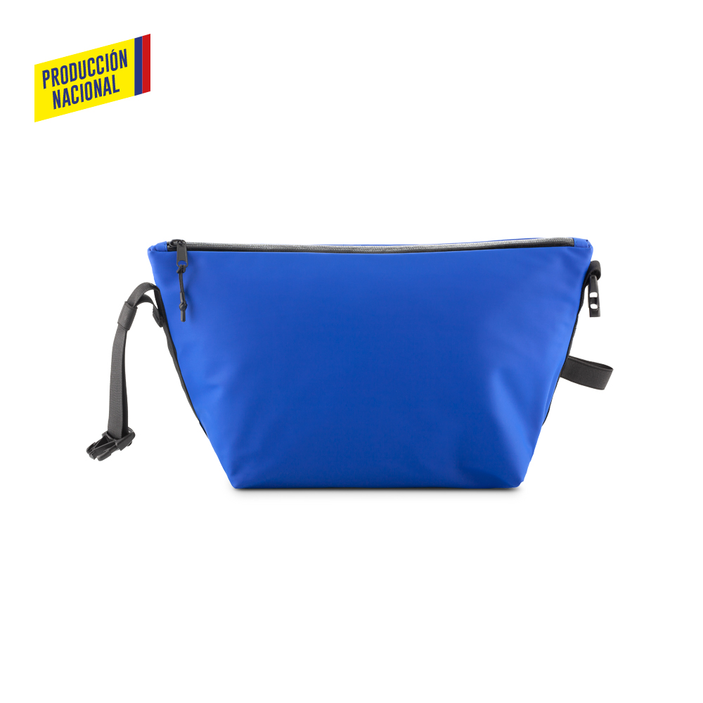 Nevera cooler en poliuretano e interior en PVC. Bolsillo con cremallera y hebilla.