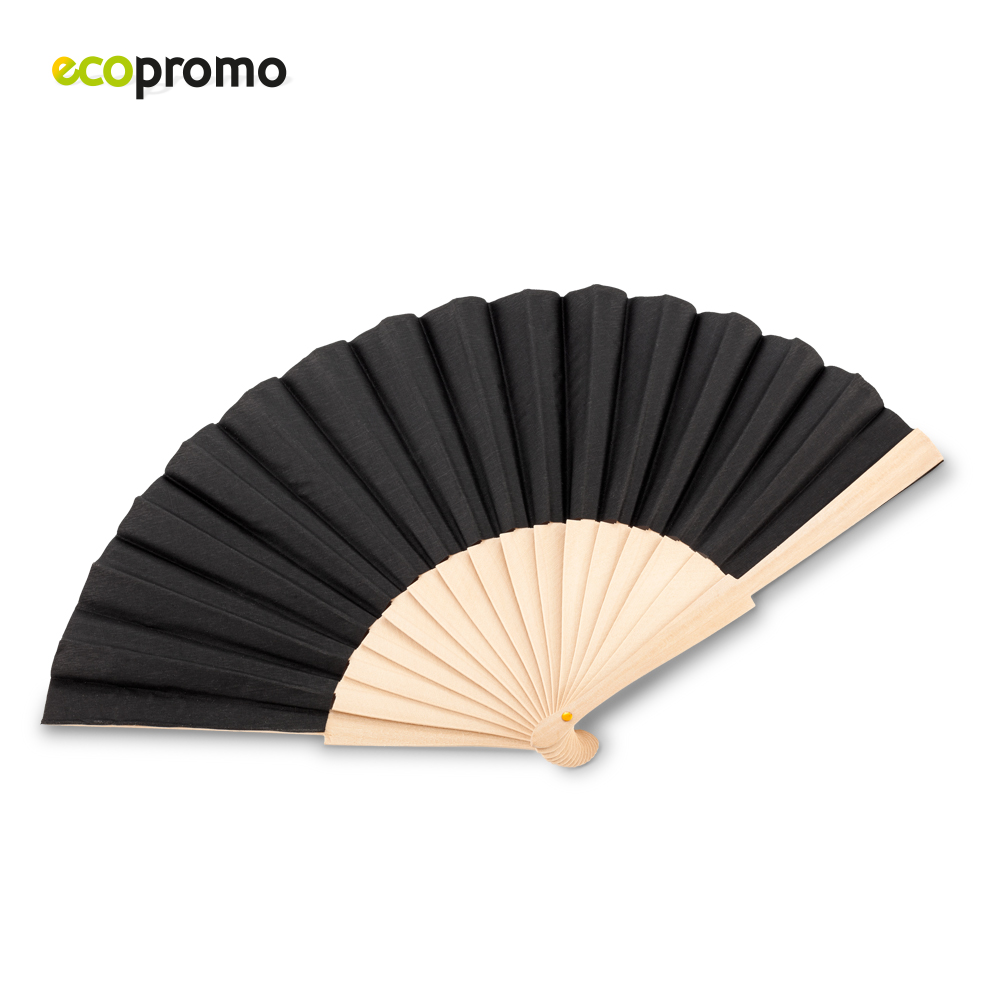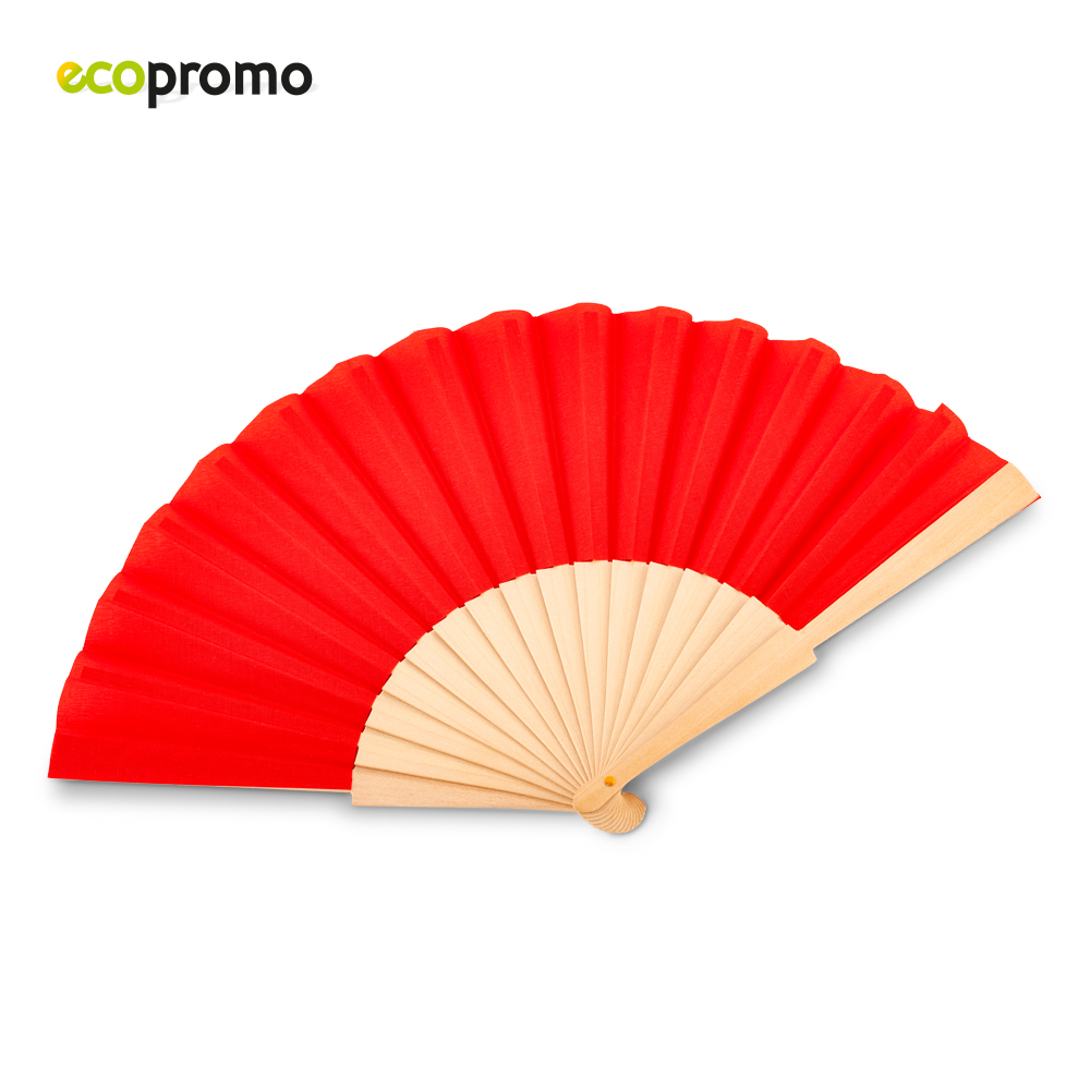 Abanico con cuerpo y 14 brazos en madera. Tela en poliéster.