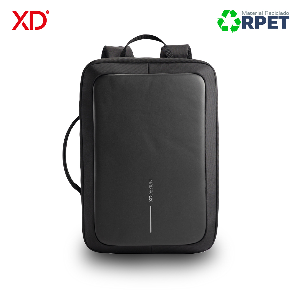 Elaborado en poliéster de alta calidad RPET, material anti corte, cremalleras escondidas, cintas reflectivas, puerto USB integrado para pilas. El interior incluye compartimiento acolchado para portátil de 15”, para tablets hasta 10”, Diseño original patentado®. No necesitará preocuparse por sus objetos personales ya que este morral antirrobo Bobby dispone de varios bolsillos camuflados. Cambia fácilmente de mochila a maletín. Incluye broche tipo carabinero de seguridad con candado y correa para colgar. Empaque Caja Individual.