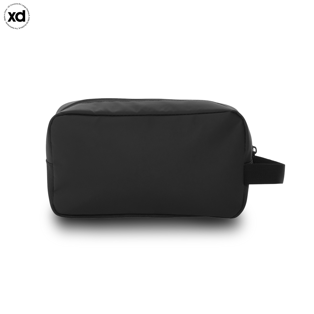 Organizador en poliéster reciclado RPET. Cuenta con un espacioso compartimiento principal, y un bolsillo externo con cremallera.