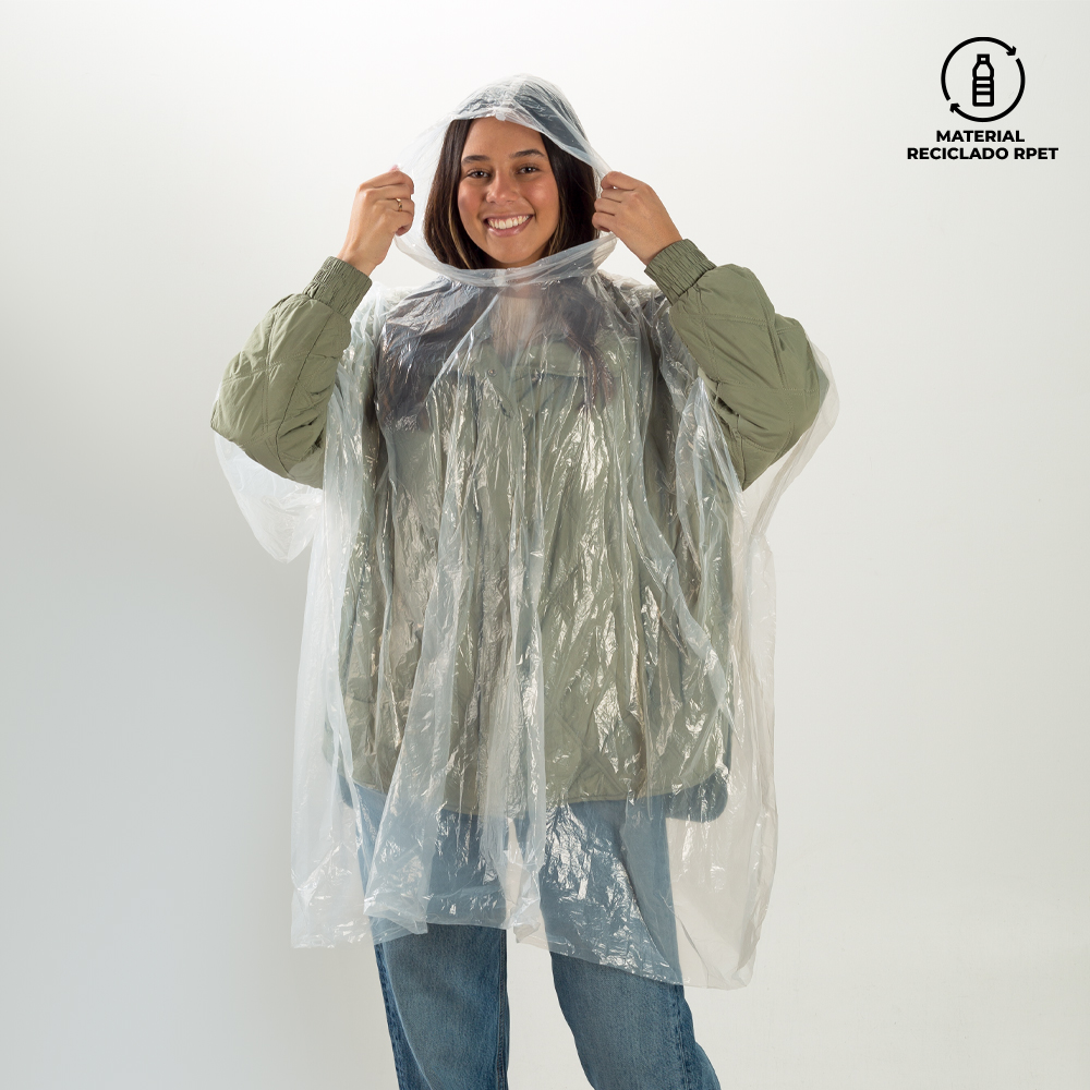 Capa poncho con bolsa reciclada RPET. Capa 123 cm x 124 cm.