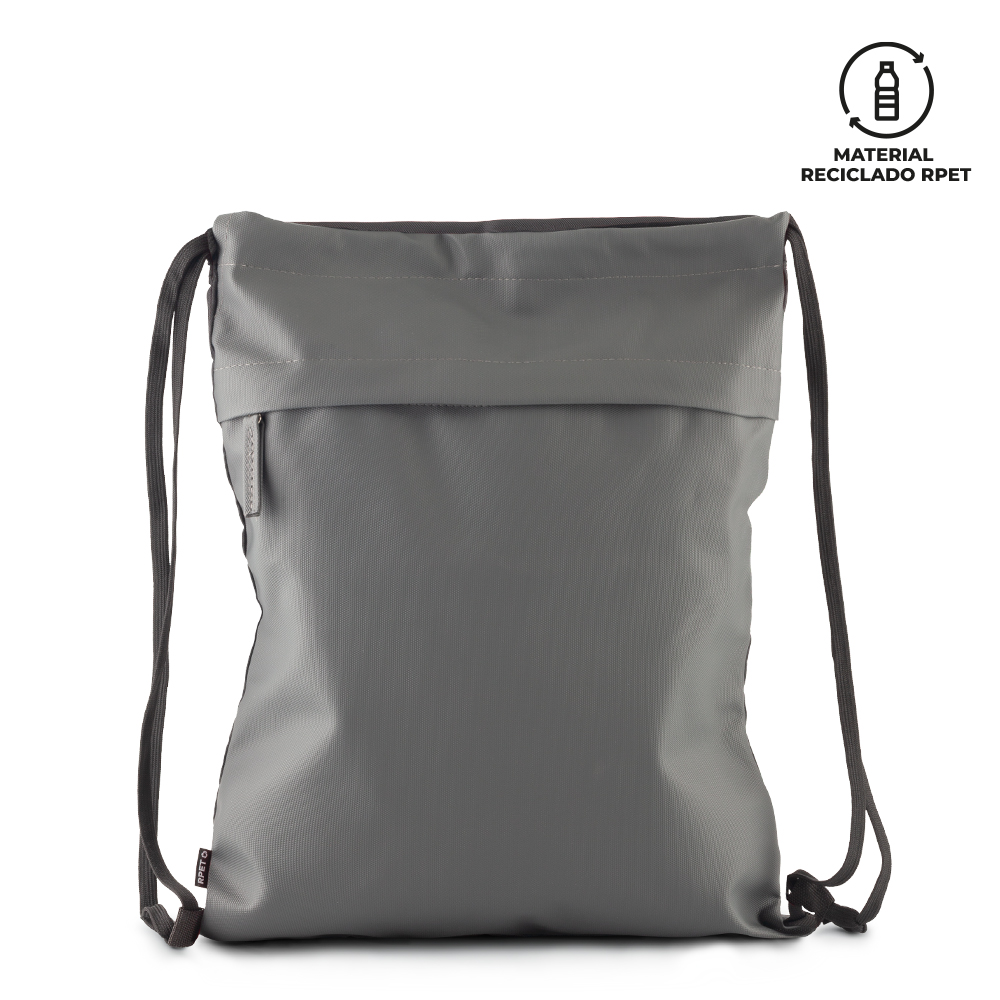 Bolsa tula en poliéster y en poliuretano reciclado RPET. Bolsillo externo con cremallera.
