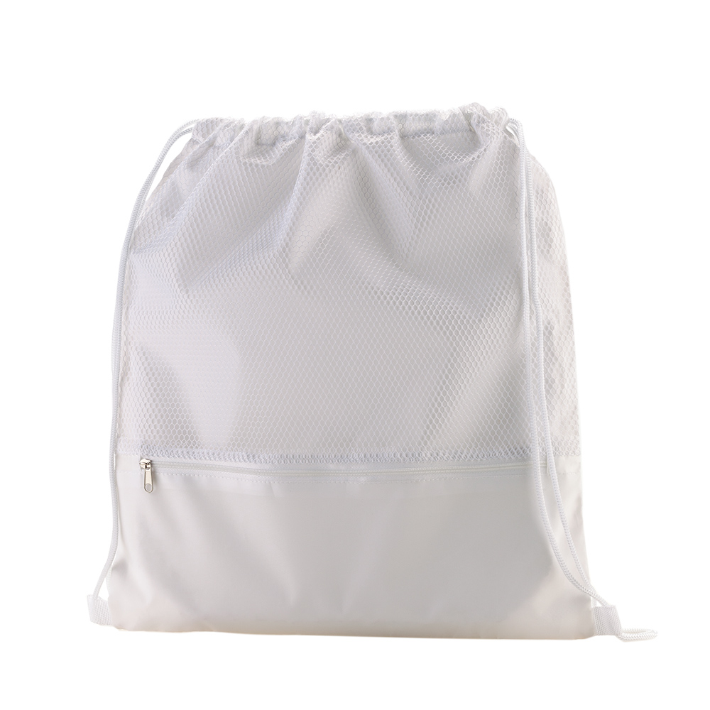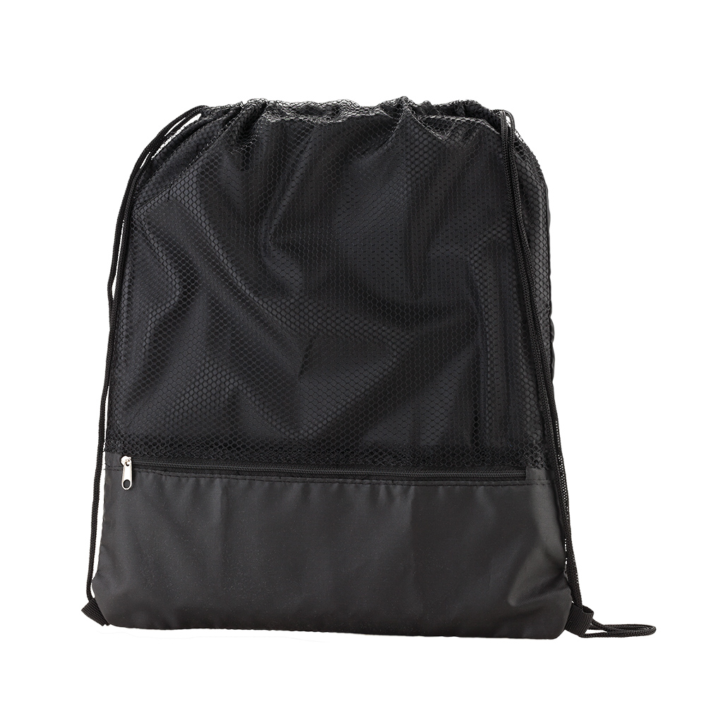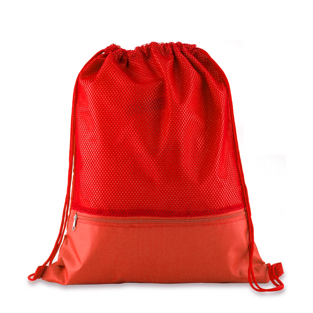Tula morral en lona poliester malla exterior bolsillo exterior con cremallera y cordon para cargar y cerrar