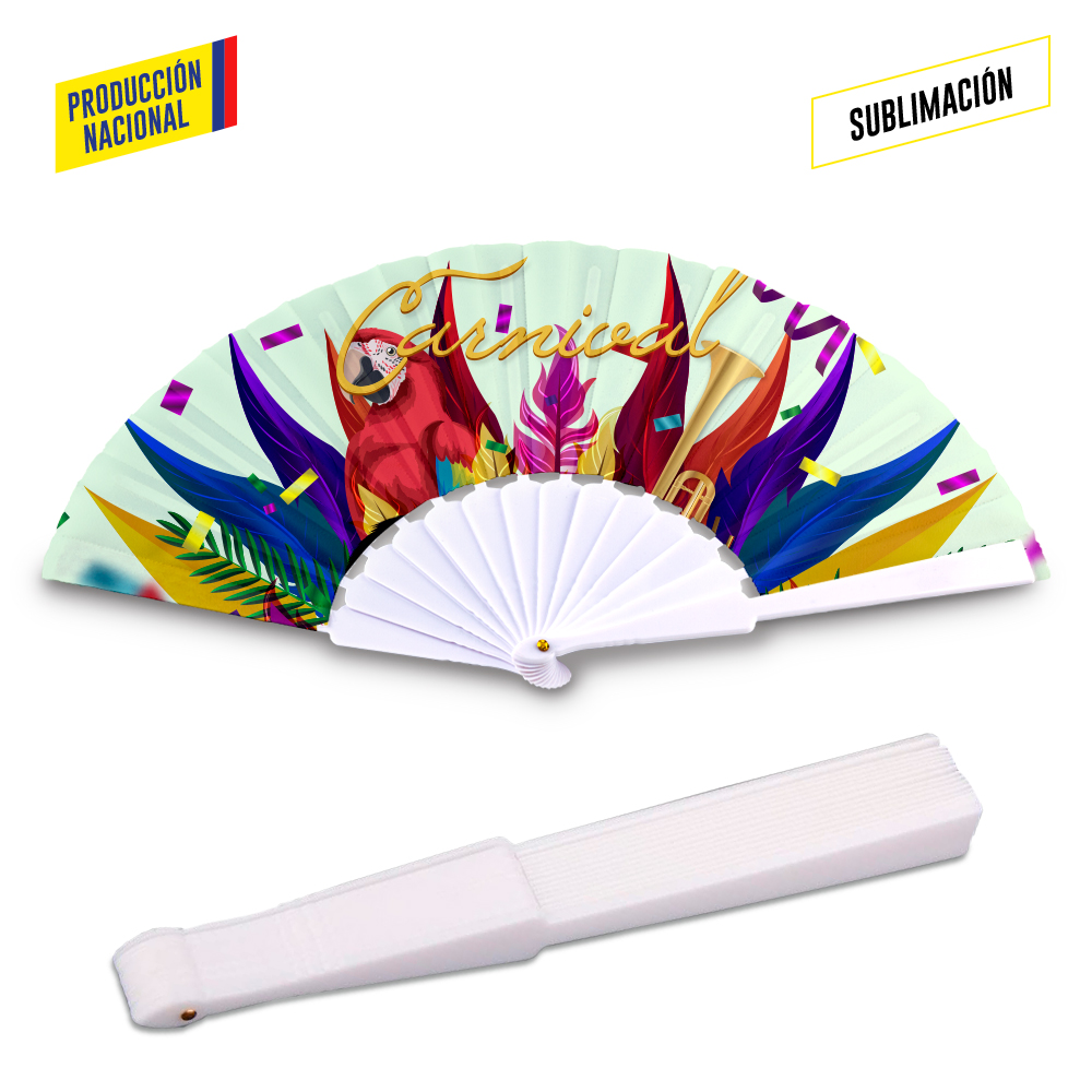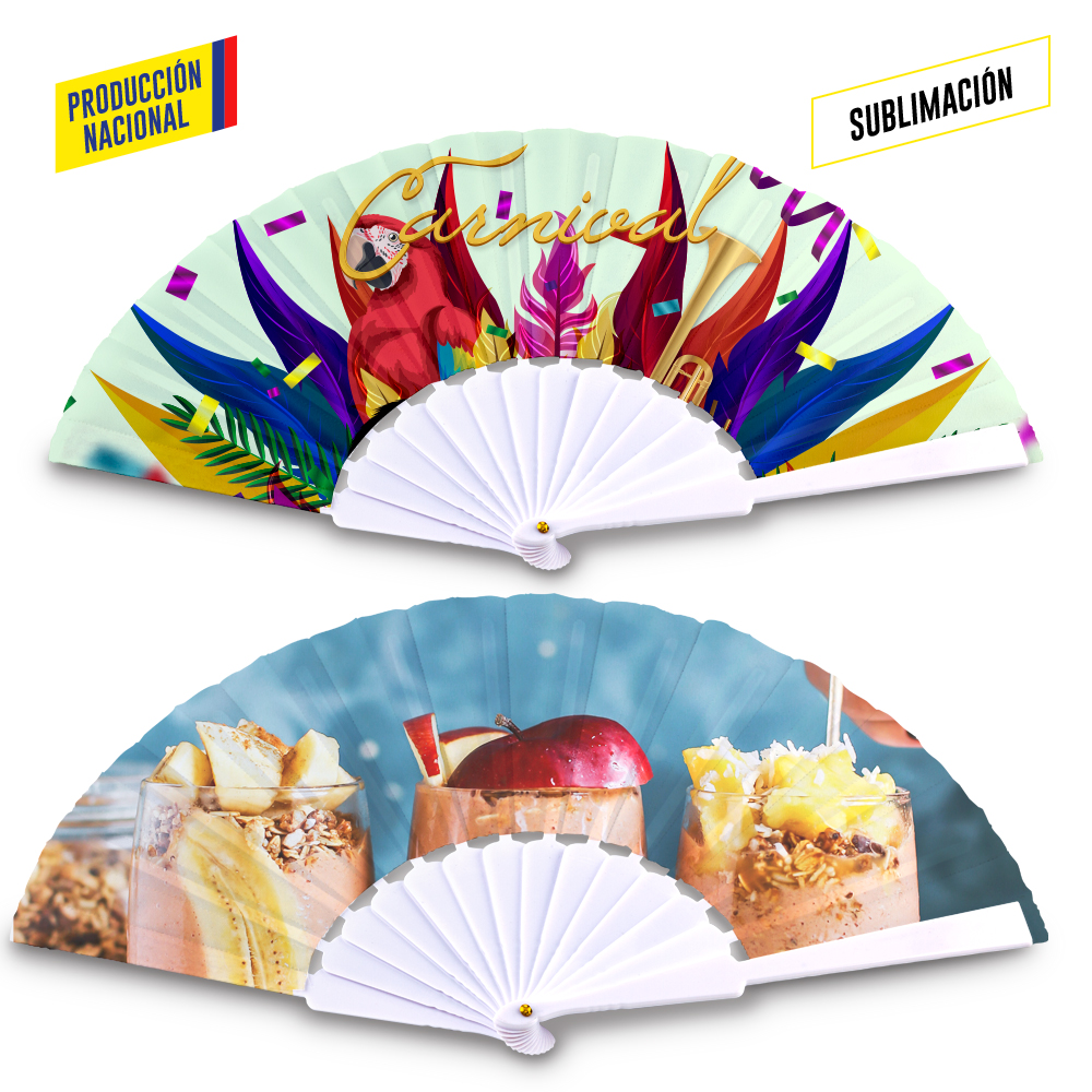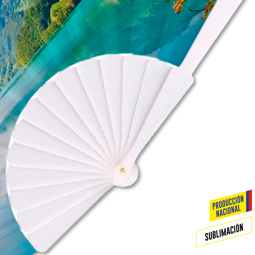 Cuerpo plastico para Abanico importado de 14 brazos en plastico Tela de produccion nacional color blanco para sublimacion El cuerpo plastico no se vende por separado