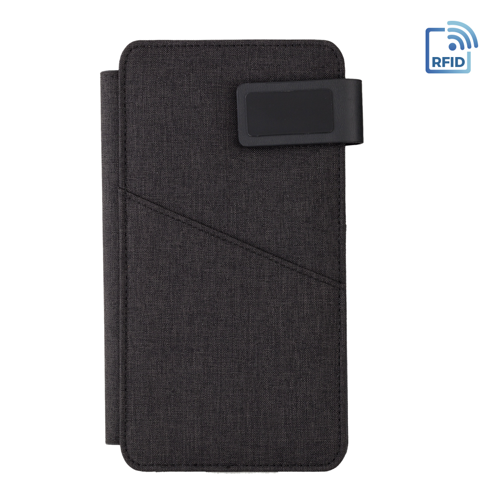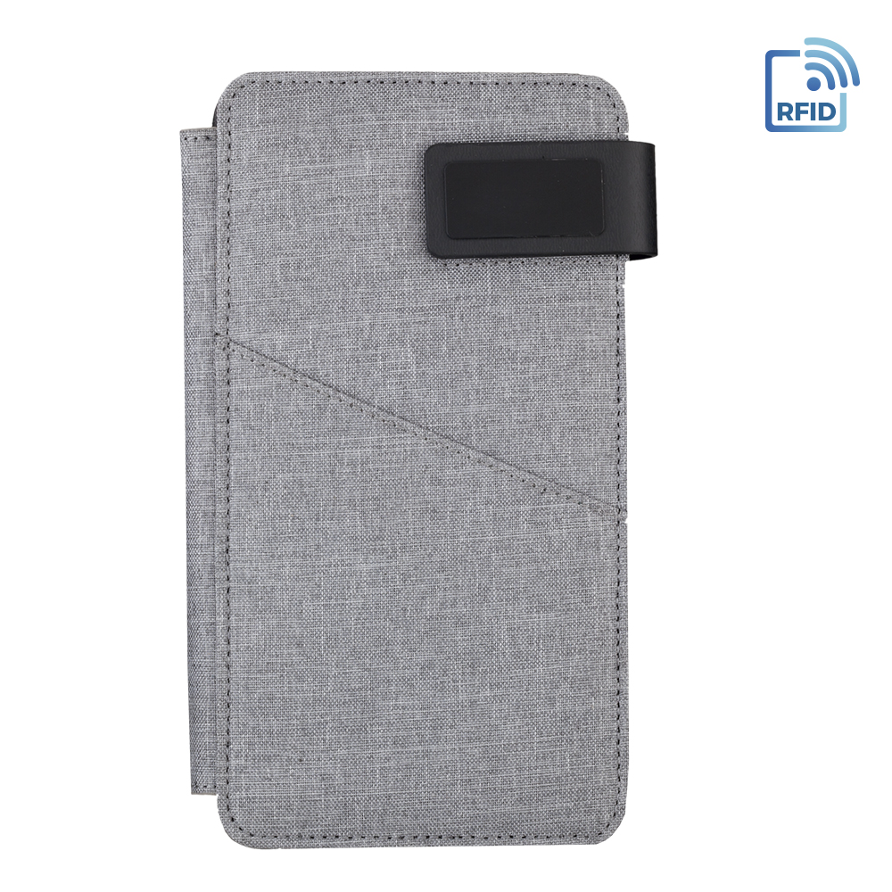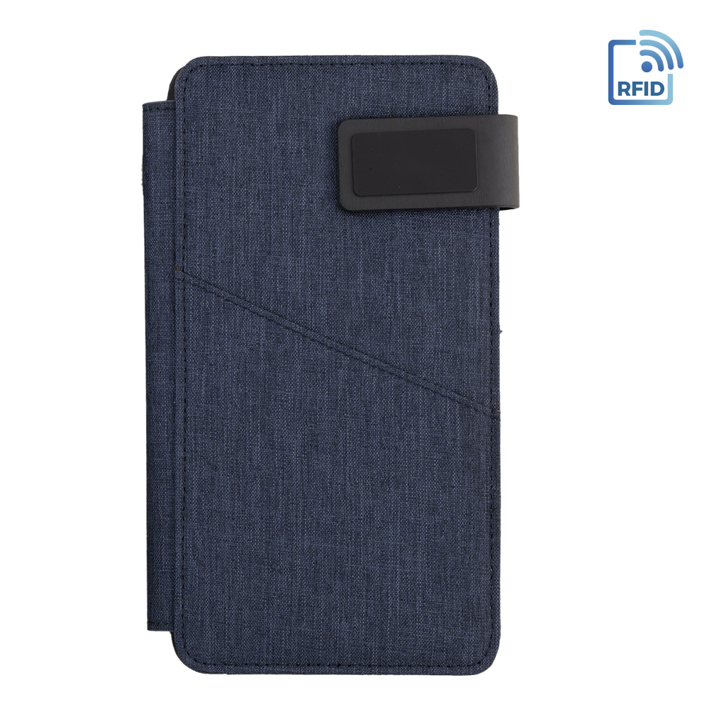 Portadocumentos en lona poliester con cierre de iman Su material interno permite bloquear las senales electromagneticasRFID (Radio Frequency Identification) que se usan en tarjetas de chip pasaportes tarjetas electronicas de transporte etc