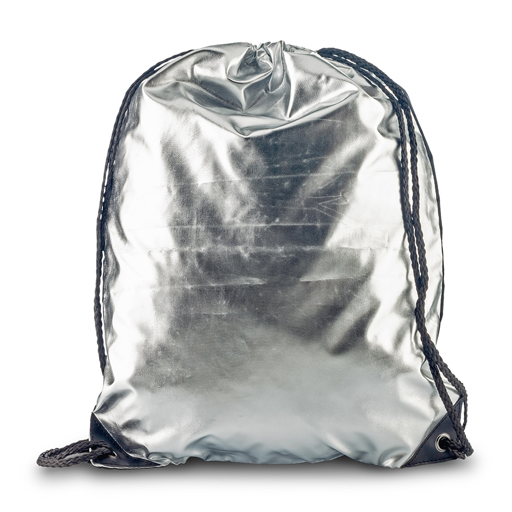 Poliester metalizado en la parte frontal Cambrel Negro en la parte posterior Cordon para cargar y cerrar