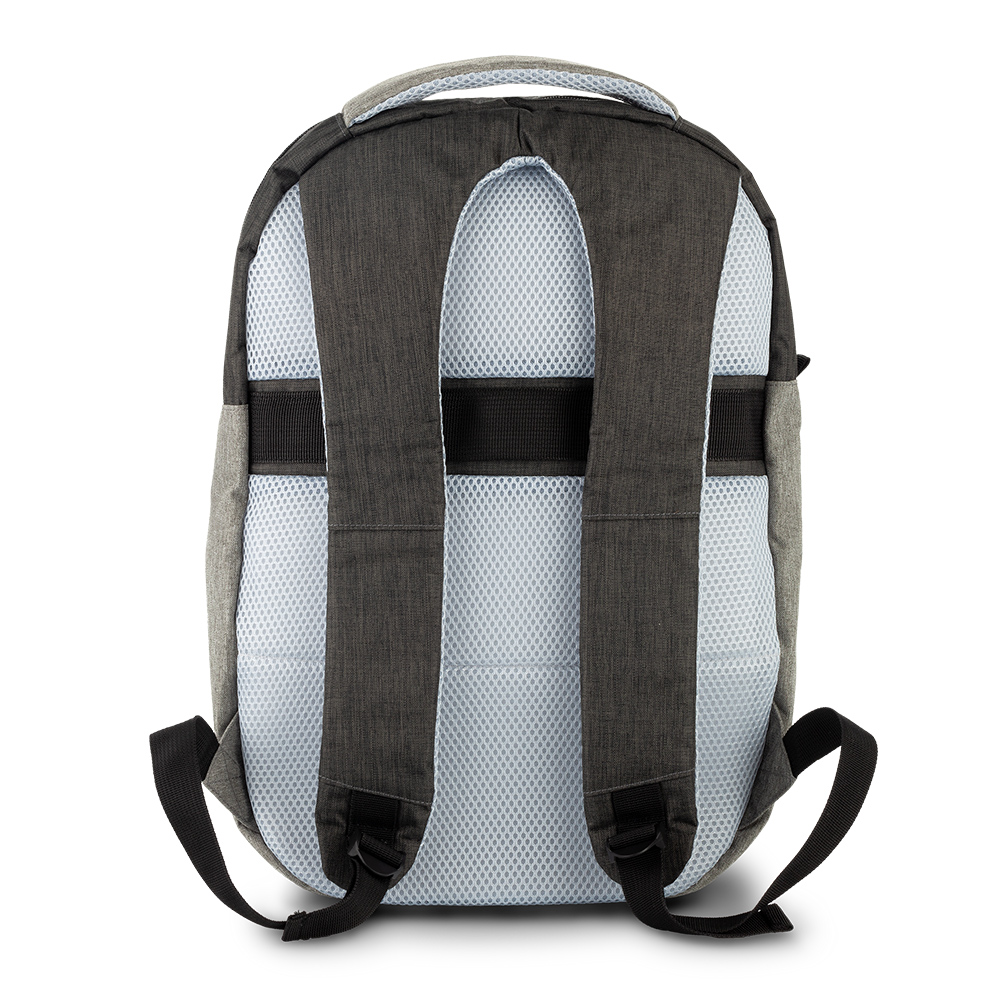Morral en poliester bolsillo principal con compartimento para laptop de 14 y bolsillo frontal Tirantes y espaldar semi-acolchados Con banda posterior para enganchar al trolley