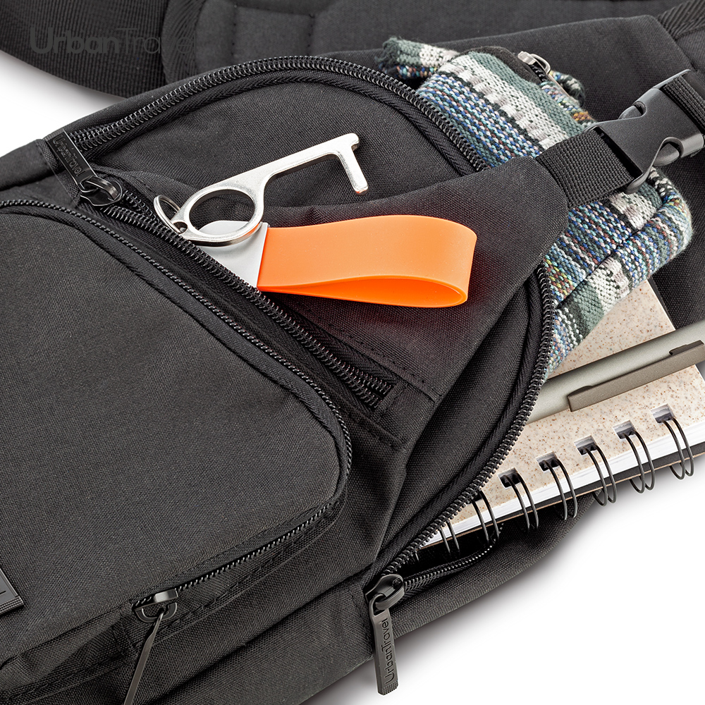 Bolso compacto manos libres en poliester tres bolsillos con cremallera un bolsillo sin cremallera