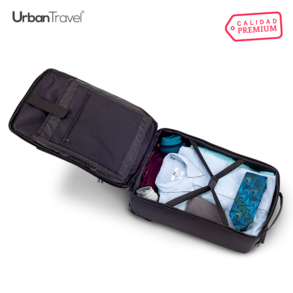 Morral tipo trolley en poliester para portatil de 15 Compartimento principal con cierre de cremallera y bolsillo frontal con organizador