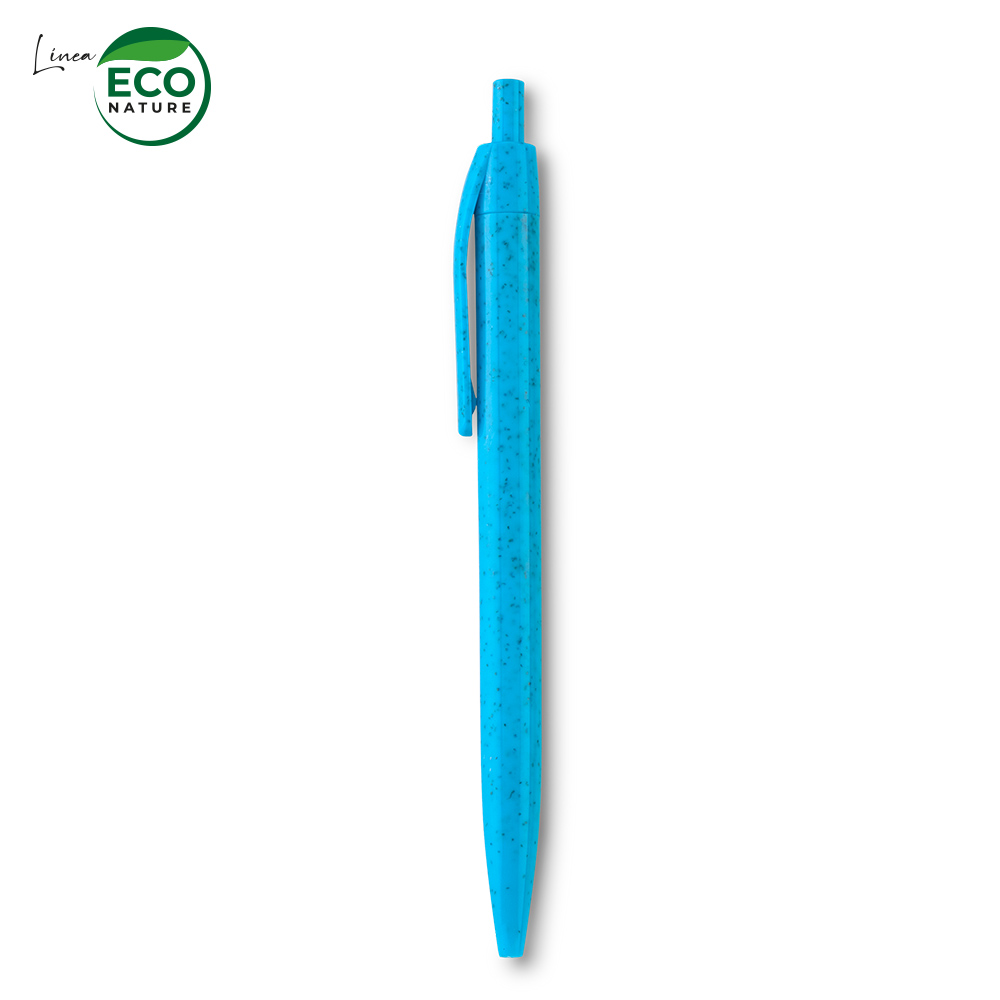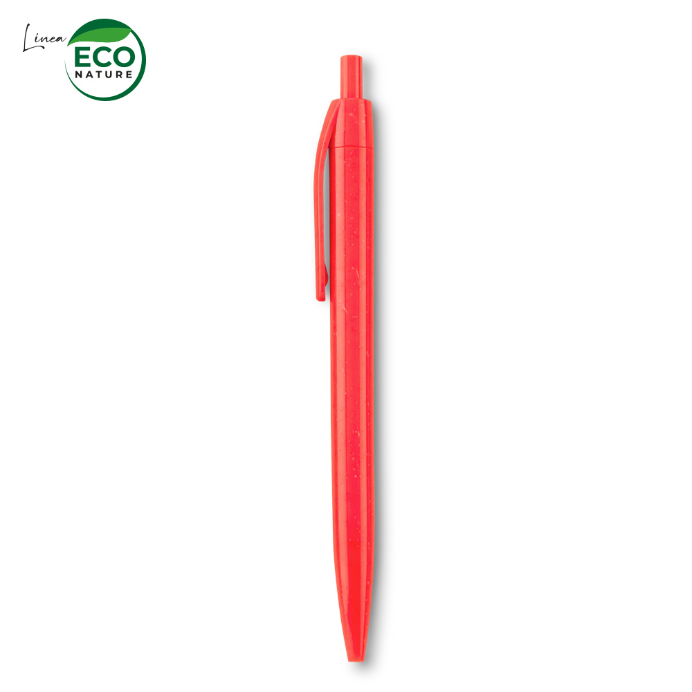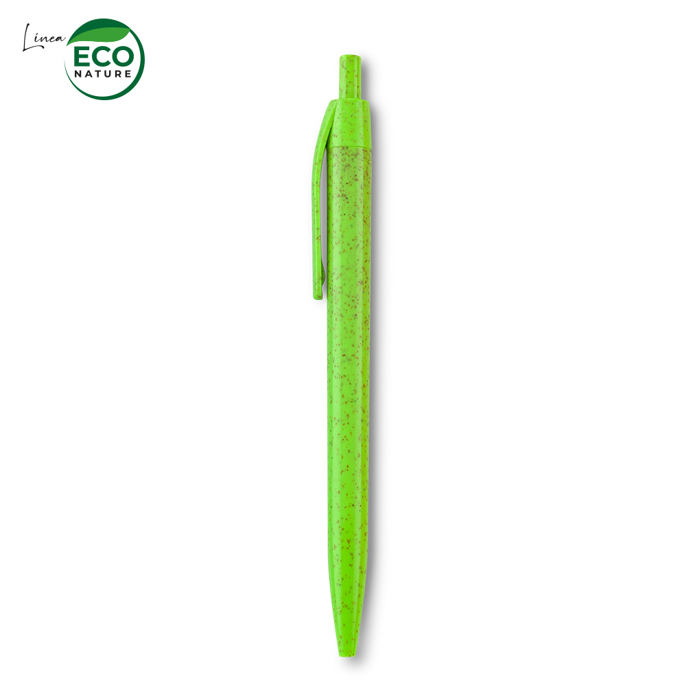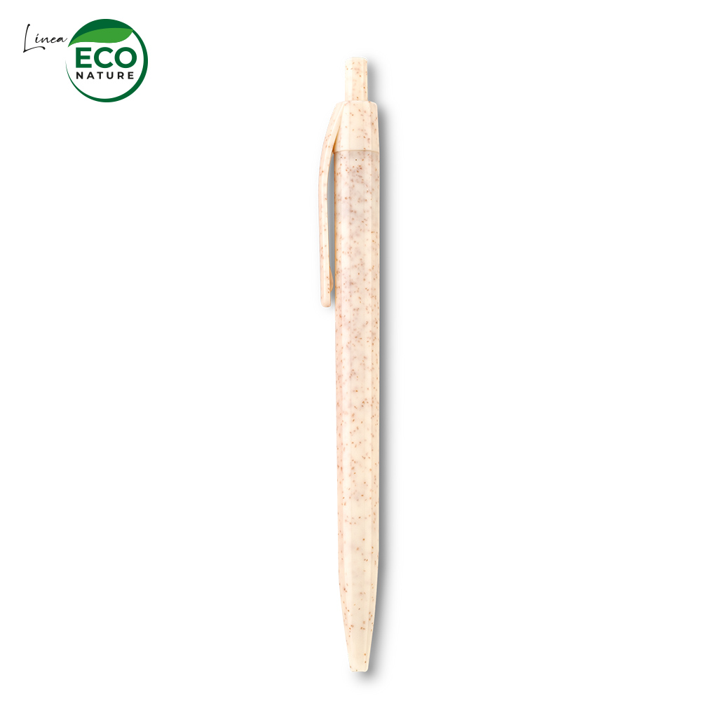 Boligrafo plastico elaborado con fibra de trigo (50% aprox) El porcentaje de material ecologico tiene un promedio de biodegradabilidad de 2-3 anos despues del fin de su vida util Mecanismo push